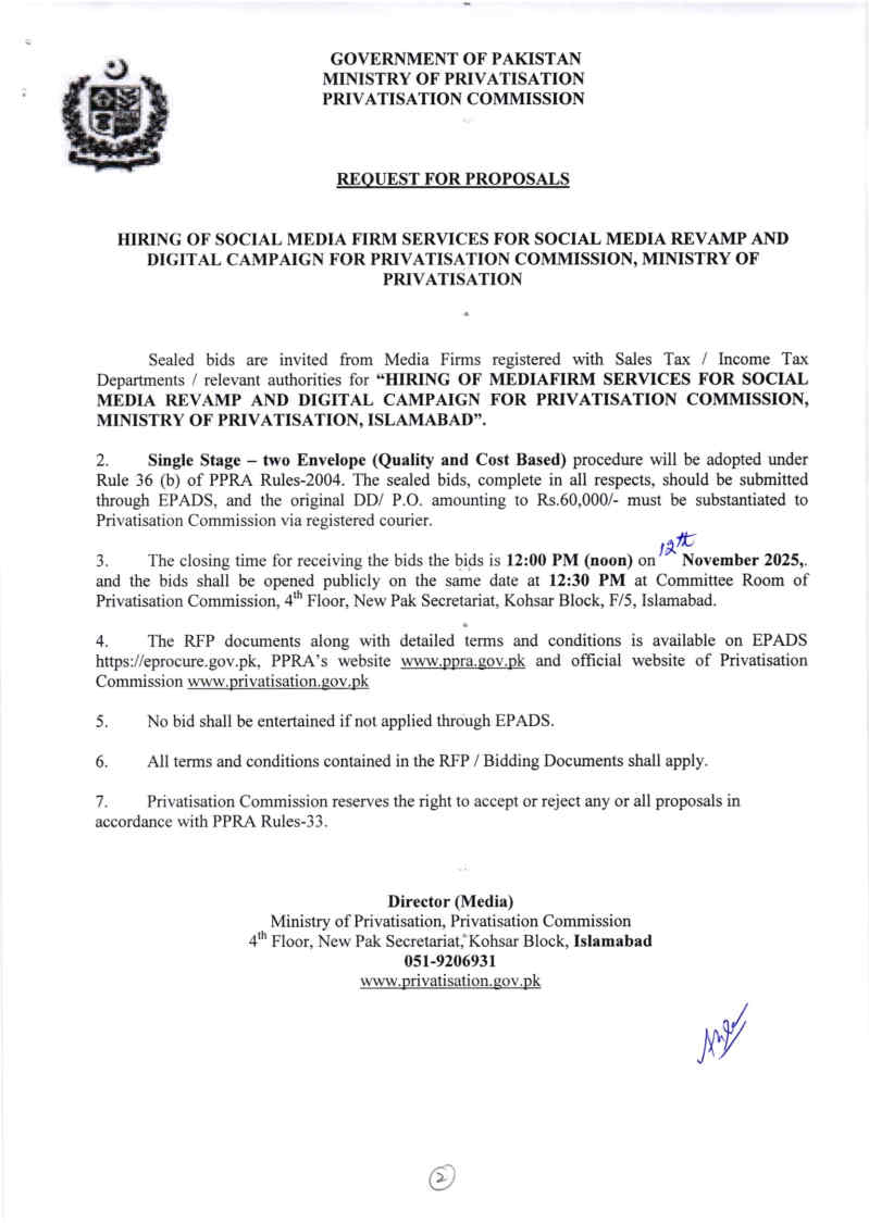 info@privatisation.gov.pk